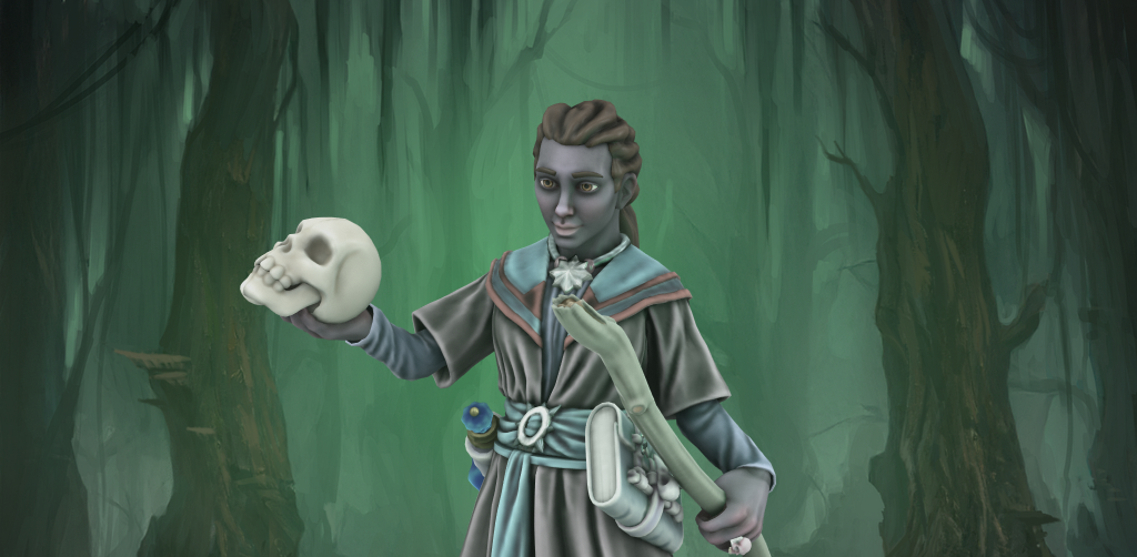 Basia is a priestess of the goddess Mera. She is a fairly unorthodox priestess, focused more on the dead than the living. Like most of Mera's Tenders, she views herself as a healer but she is more focused on healing souls than healing bodies. As a spirit loa, she can detect ghosts and occasionally channel the power and knowledge of the dead in limited bursts. Her strongest calling is to help the restless dead, aka ghosts, pass on to the proper afterlife. She also tries to prevent ghosts from forming in the first place, serving as a counselor to older and ailing living people to try to make sure they die without regrets and making sure that funerary practices are performed flawlessly (proper funerary practices reduce but do not completely eliminate the chances of the deceased rising again as a ghost). Basia will exorcise ghosts that are beyond saving, but only as a last resort. And doing so will often put Basia into a lengthy period of melancholy. It doesn't make things easier that the main way to exorcise a ghost is to beat them into oblivion with a Silverwood staff."Basis is a good person, and she definitely provides an important service to Fumaya and the Nine. She is nice and friendly and even pretty. But being around her makes the hairs on my neck stand up. I don't know if it's her or the friends that follow in her wake." -Aheneus Estalar of the Dawn, priest of Khemra