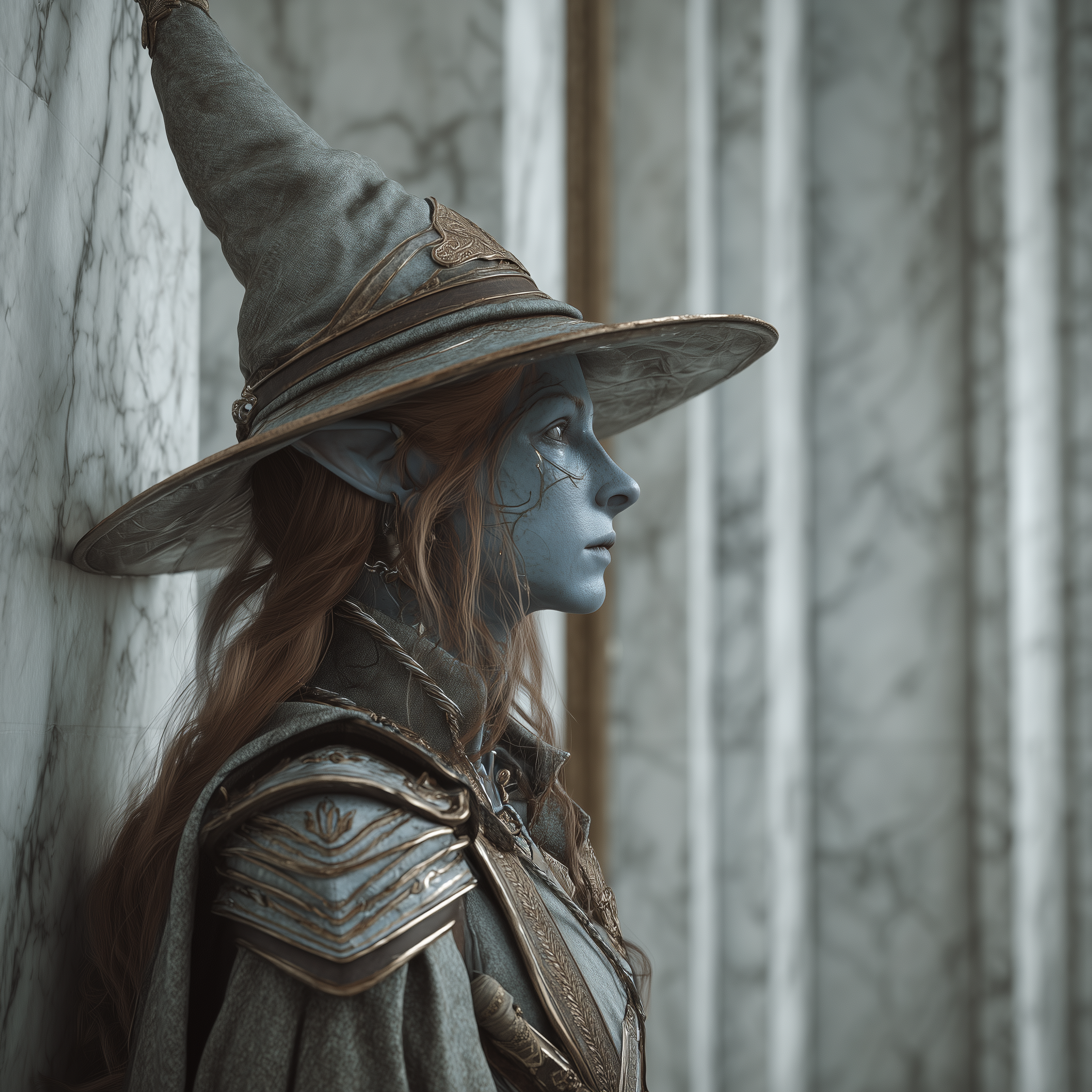 "Some peasant superstitions believe that wizards favor wizard's hats because the shape of a wizard's hat helps them channel mystic power. Others say that wearing these hats was part the fulfillment of an ancient pact with Fae or spirits or the Greymoria, the Kindly One. The truth of the matter goes all the way back to the Red Era, but it's not a very magical tale. Most books and scrolls were destroyed during the Second Unmaking. When the Third Age dawned, most surviving texts describing classical hermetic wizardry were on the Island of Lunatus, what we now know as the capital of the Elven Empire. Classical hermetic wizardry became the dominant magical tradition on the island and most of the other mages quietly left. Even more than other mages, classical hermetics are the sorts that would rather stay a musty library endlessly reading than go outside. So like other scroll heads, classical hermetics are often a big pale of complexion. The Island of Lunatus is located on the equator and is very sunny. If pasty-faced scroll heads do venture outside, they will get sunburned very quickly. Ergo, wide brimmed hats became necessary.As the Elven Empire expanded their trade network, classical hermetic wizardry spread with it, and the rapidly growing ranks of human hermetics opted to wear tall pointy wide brimmed hats to fit in with their elf mentors and would-be colleagues. Wizard hat style began to evolve among humans and elves alike very slowly over the centuries. The style gradually changed from rigid pointy hats to floppy pointy hats. Maybe they got tired of knocking off their hats walking through narrow doorways. Classical hermetic wizardry became the political dominant magical tradition in West Colassia and Penarchia and Folk Magicians started copying their hat styles, because folk mages copy everything. Hermetics and folk magicians now collectively make up the bulk of mages in most human lands, so now their style of hats are considered iconic to mages in general, whether they like it or not. Many don't like it. Most Swynfaredian Dragonbloods wouldn't be caught dead in a 'wizard's filthy peasant hat'. Most warlocks dress to blend in with a crowd rather than stand out. I haven't met enough rune casters to make a broad judgement on them, but I'm pretty sure the tattoo wizards would walk around naked if it were allowed."For a long time, gray elf lords and ladies associated height with social status, so they wore tall pointy hats to accentuate their height. The elven hermetic wizards wanted to get invited to the lords' fancy parties so they started wearing tall pointy hats, but kept the wide brims. Eventually tall pointy hats went out of favor among the elf nobility but this point, peasants and princes alike were so used to seeing their wizards wearing tall pointy hats with wide-brims, that it sort of became part of their public uniform.
