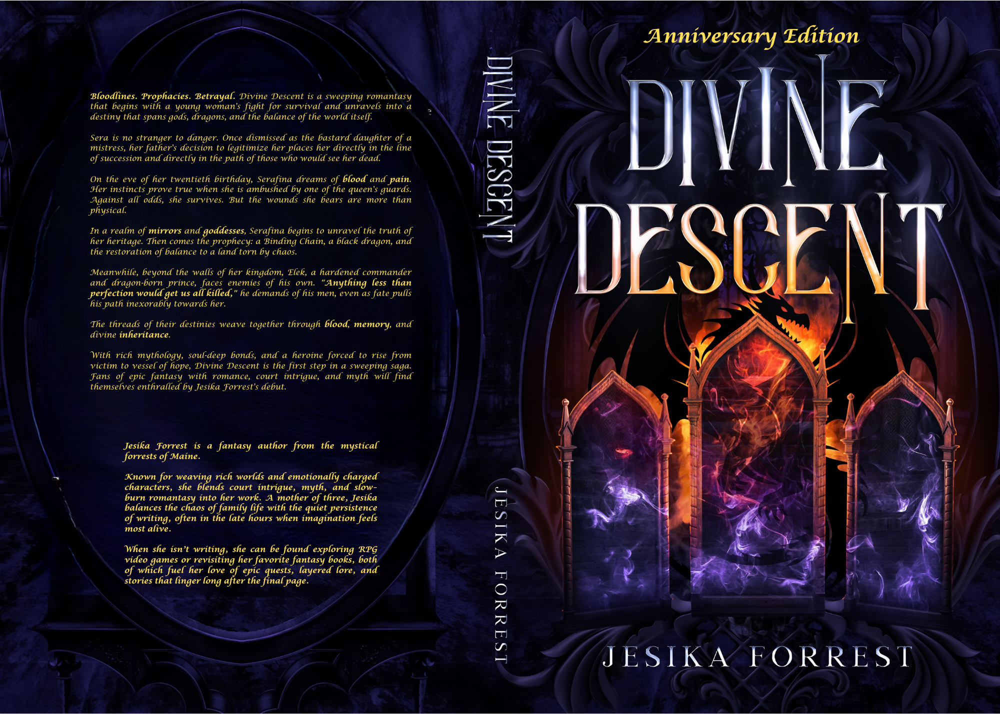 Bloodlines. Prophecies. Betrayal. Divine Descent is a sweeping romantasy that begins with a young woman’s fight for survival and unravels into a destiny that spans gods, dragons, and the balance of the world itself.